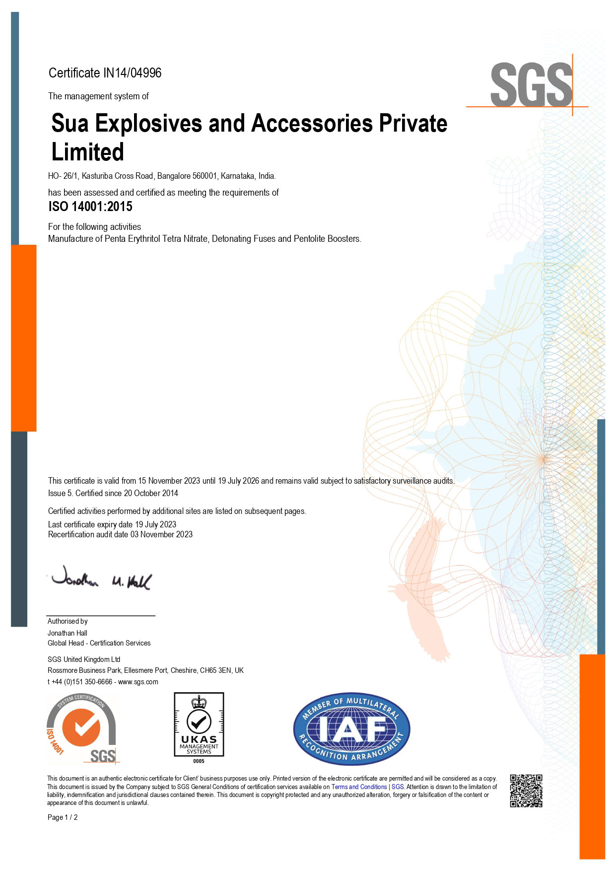 SEAPL’s entire range of Detonating cord marketed under the brand name "Macord I" and Macord U has been certified by the Explosives Notified Body, CerTrust, Budapest, Hungary, for affixing the mark (Conformite Europeenne). |